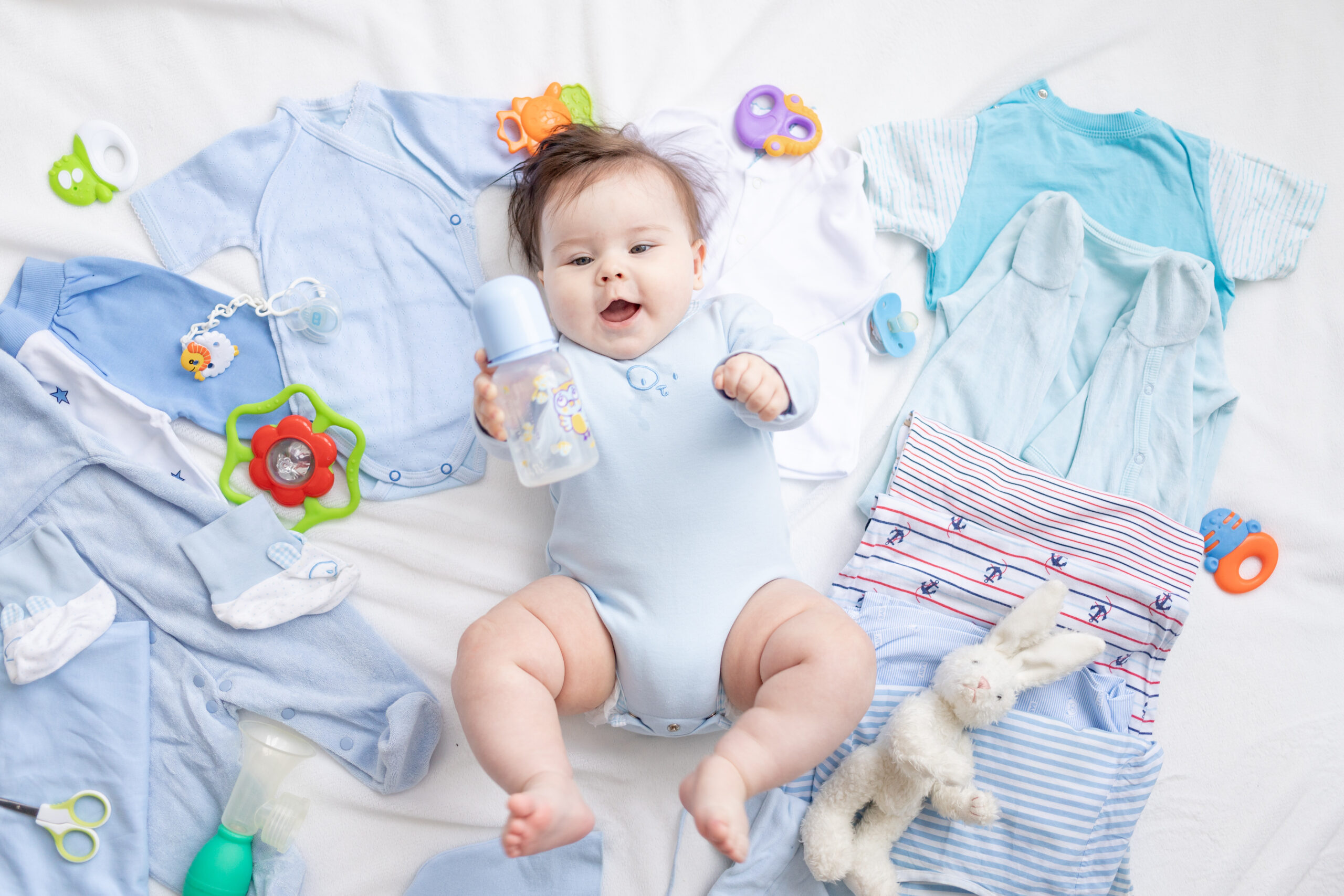 - Quần áo mặc cho bé khi về nhà: áo lót hoặc áo liền quần, và một bộ đồ cài khuy bấm